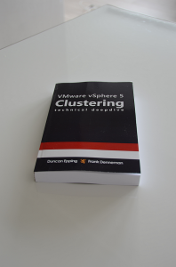 As of today the paperback versions of the VMware vSphere 5 Clustering Technical Deepdive is available at Amazon. We took the feedback into account when creating this book and are offering a Full Color version and a Black and White edition. Initially we planned to release an Ebook and a Full Color version only, but due to the high production cost associated with Full color publishing, we decided to add a Black and White edition to the line-up as well. At this stage we do not have plans to produce any other formats. As this is self-publishing release we developed, edited and created everything from scratch. Writing and publishing a book based on new technology has serious impact on one’s life, reducing every social contact to a minimum even family life. As of this, our focus is not on releasing additional formats such as ibooks or Nook at this moment. Maybe at a later stage but VMworld is already knocking on our doors, so little time is left to spend some time with our families. When producing the book, the page count rapidly exceeded 400 pages using the 4.1 HA and DRS layout. As many readers told us they loved the compactness of the book therefor our goal was to keep the page count increase to a minimum. Adjusting the inner margins of the book was the way to increase the amount of space available for the content. A tip for all who want to start publishing, start with getting accustomed to publisher jargon early in the game, this will save you many failed proof prints! We believe we got the right balance between white-space and content in the book, reducing the amount of pages while still offering the best reading experience. Nevertheless the number of pages grew from 219 to 348. While writing the book, we received a lot of help and although Duncan listed all the people in his initial blog, I want to use take a moment to thank them again. First of all I want to thank my co-author Duncan for his hard work creating content, but also spending countless hours on communication with engineering and management. Anne Holler - DRS and SDRS engineer – Anne really went out of her way to help us understand the products. I frequently received long and elaborate replies regardless of time and day. Thanks Anne! Next up is Doug – its number Frank not amounts! – Baer. I think most of the time Doug’s comments equaled the amount of content inside the documents. Your commitment to improve the book impressed us very much. Gabriel Tarasuk-Levin for helping me understand the intricacies of vMotion. A special thanks goes out to our technical reviewers and editors: Keith Farkas and Elisha Ziskind (HA Engineering), Irfan Ahmad and Rajesekar Shanmugam (DRS and SDRS Engineering), Puneet Zaroo (VMkernel scheduling), Ali Mashtizadeh and Doug Fawley and Divya Ranganathan (EVC Engineering). Thanks for keeping us honest and contributing to this book. I want to thank VMware management team for supporting us on this project. Doug “VEEAM” Hazelman thanks for writing the foreword! Availability This weekend Amazon made both the black and white edition and the full color edition available. Amazon list the black and white edition as: VMware vSphere 5 Clustering Technical Deepdive (Volume 2) [Paperback], whereas the full color edition is listed with Full Color in its subtitle. Or select the following links to go the desired product page: Black and white paperback $29.95 Full Color paperback $49.95 For people interested in the ebook: VMware vSphere 5 Clustering Technical Deepdive (price might vary based on location) If you prefer a European distributor, ComputerCollectief has both books available: Black and White edition: http://www.comcol.nl/detail/74615.htm Full Color edition: http://www.comcol.nl/detail/74616.htm Pick it up, leave a comment and of course feel free to make those great mugshots again and ping them over via Facebook or our Twitter accounts! For those looking to buy in bulk (> 20) contact [email protected].