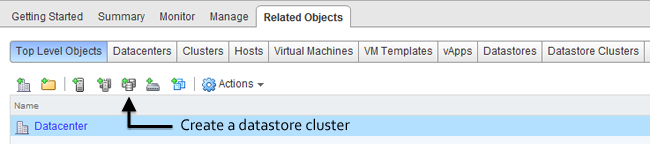 vSphere 5.1 main user interface is provided by the web client, during beta testing I spend some time to get accustomed to the new user interface. In order to save you some time, I created this write-up on how to create a datastore cluster using the web client. I assume you already installed the new vCenter 5.1. If not, check out’s Duncan post on how to install the new vCenter Server Appliance. Before showing the eight easy steps that need to be taken when creating a datastore cluster, I want to list some constraints and the recommendations for creating datastore clusters. Constraints: • VMFS and NFS cannot be part of the same datastore cluster. • Similar disk types should be used inside a datastore cluster. • Maximum of 64 datastores per datastore cluster. • Maximum of 256 datastore clusters per vCenter Server. • Maximum of 9000 VMDKs per datastore cluster Recommendations: • Group disks with similar characteristics (RAID-1 with RAID-1, Replicated with Replicated, etc.) • Leverage information provided by vSphere Storage APIs - Storage Awareness The Steps 1. Go to the Home screen and select Storage