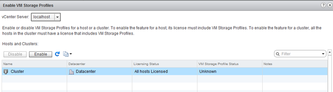 2. Select the Icon in the middle to enable VM Storage profiles