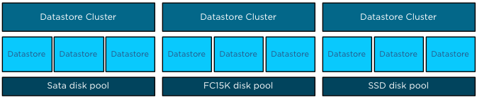 | SSD – Low latency disks (Tier 1 VMs and VMDKs) | Datastore Cluster Tier 1 VMs and VMDKs |