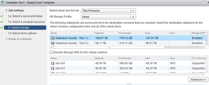 For more information about load balancing based on DRMdisk instead of a complete VM, please read the article: Impact of Intra VM affinity rules on Storage DRS. Part 3 will cover applying Storage Profiles to virtual machine templates Get notification of these blogs postings and more DRS and Storage DRS information by following me on Twitter: @frankdenneman