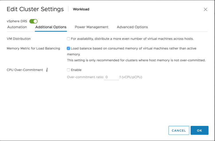 Active versus Consumed Memory Bias If you design your cluster with no memory overcommitment as guiding principle, I recommend to test out the vSphere 6.5 DRS option “Memory Metric for Load Balancing”. You might want to switch DRS to manual mode, to verify the recommendations first.