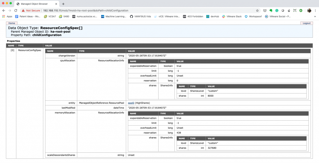 We have to trust the system to do its thing. And typically, that’s what you want anyway. We don’t expect you to keep on staring at dynamically changing share values. But to prove it works, it would be nice if we can see what happens under the cover. And you can, but of course, this is not something that we expect you to do during normal operations. To get the share values, you can use the vSphere Managed Object Browser. William (of course, who else) has written extensively about the MOB. Please remember that it’s disabled by default, so follow William’s guidance on how to enable it.