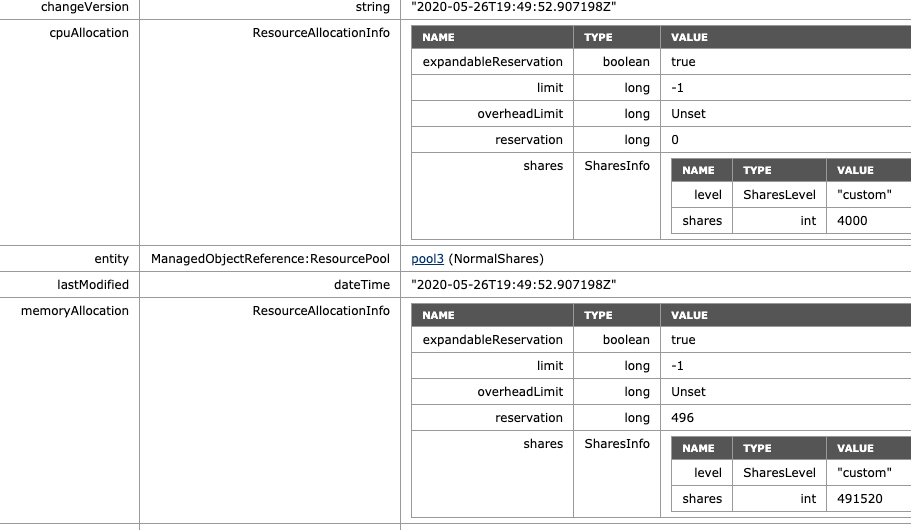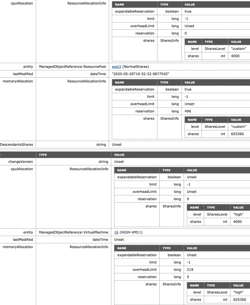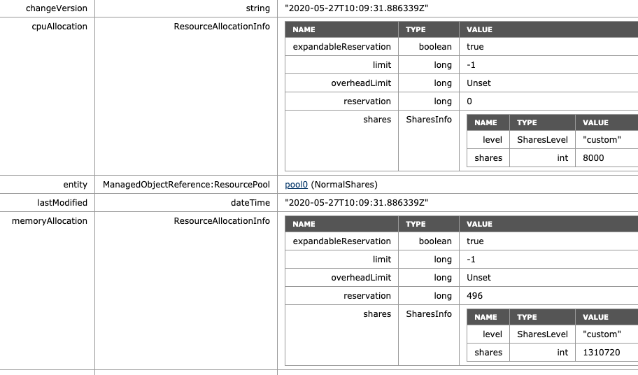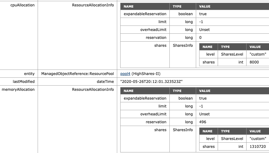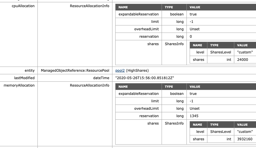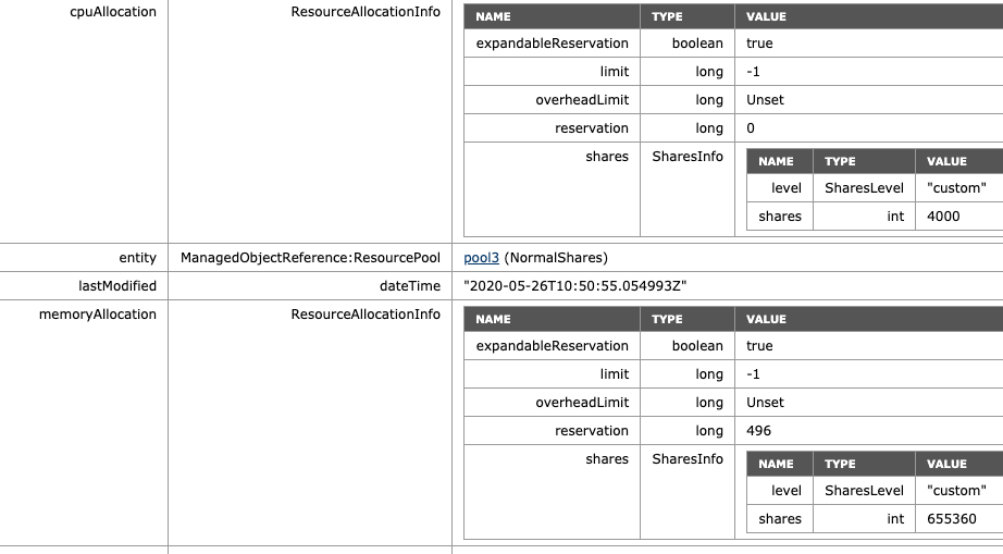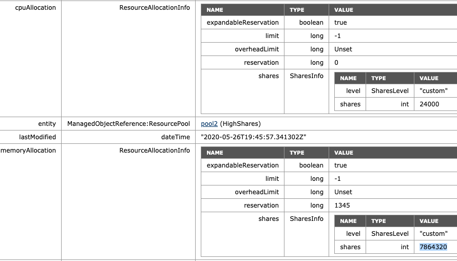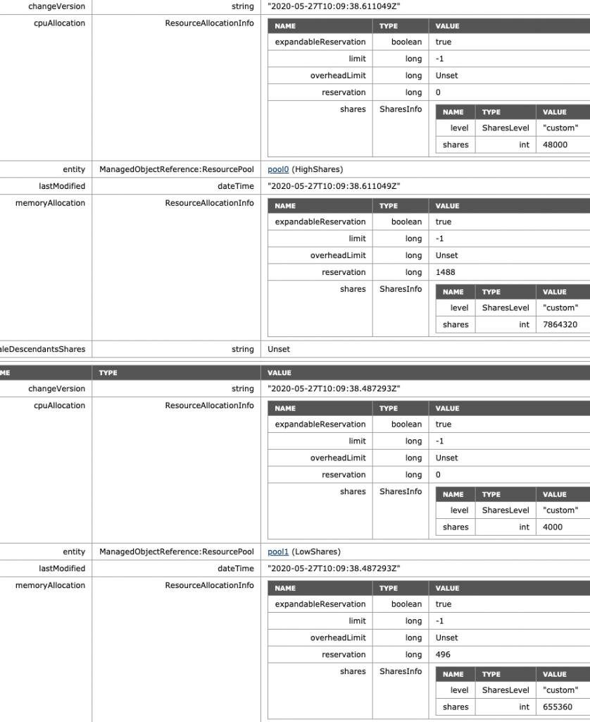 - ManagedObjectReference:ResourcePool: pool0 (HighShares)
