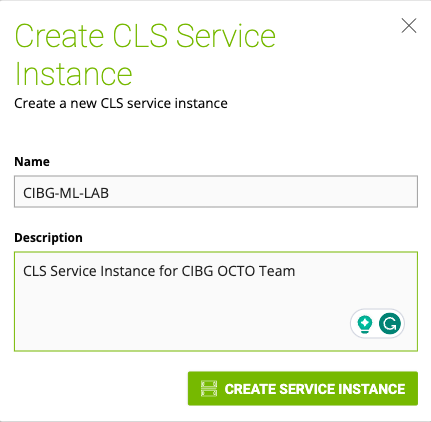 Provide a name and description for the CLS Service Instance.