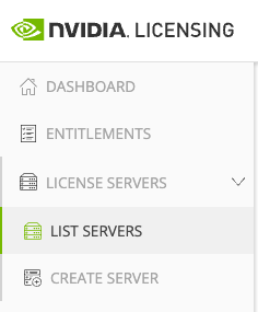 In the left menu, select License Servers, and click LIST SERVERS.