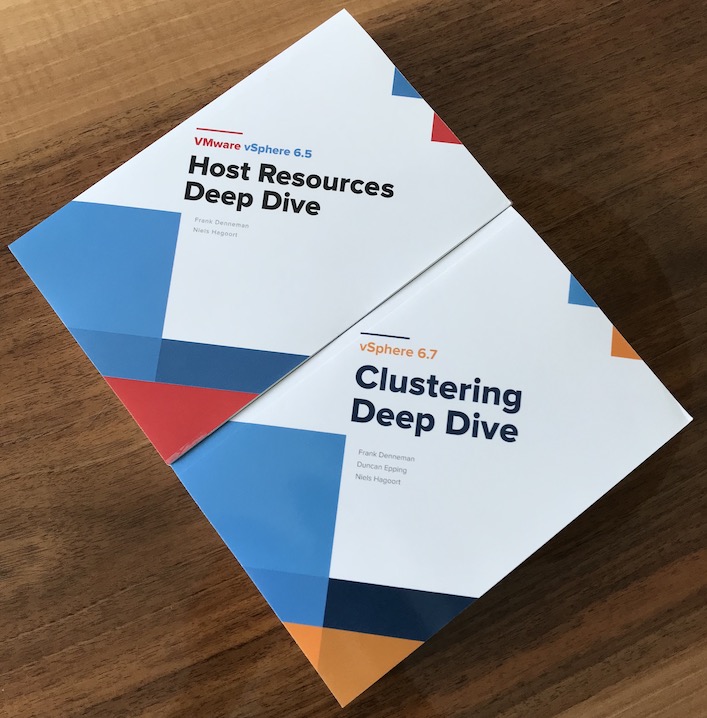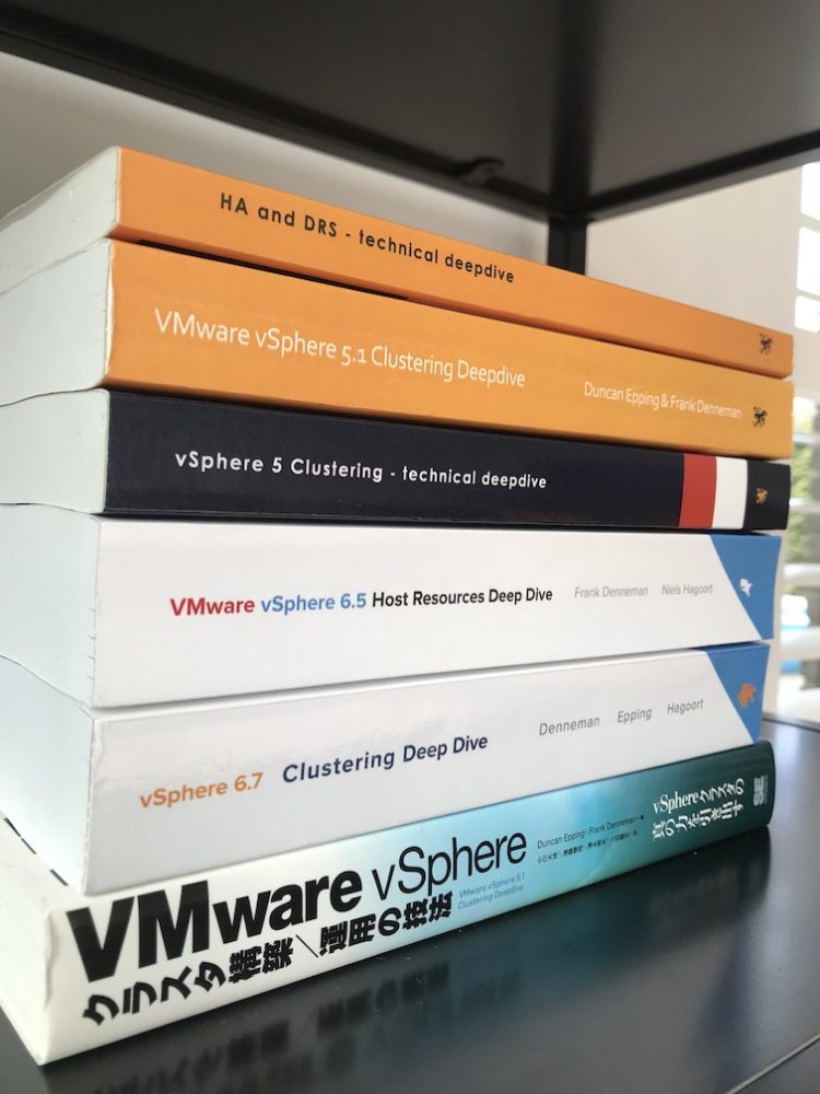 The new version of the vSphere clustering deep dive is available on Amazon. The vSphere 6.7 Clustering Deep Dive is the fourth edition of the best selling series. Over 50.000 clustering deep dive books have been distributed, and I hope this version will find its way on your desk. The new version of the clustering deep dive covers HA, DRS, Storage DRS, Storage I/O Control and Network I/O Control. In the last part of the book, we bring all the theory together and apply it to create and describe a stretched cluster configuration. Now, why am I using the title vSphere 6.x Deep Dive Resource Kit? Well, it’s because we believe that when you pair this with the vSphere 6.5 Host Resource Deep Dive book, you get this bundle that allows you to understand the core of your virtual infrastructure. Changing the Game When Duncan and I set out to write the 4.1 HA and DRS deep dive, we wanted to change the content of technical books. Instead of having a collection of screenshots paired with the text, next, next finish, we wanted to provide a thorough explanation of what happens under the cover. When you push this button, this happens in the code. By uncovering the inside, we arm the administrator and architect with the knowledge to create or troubleshoot any architecture anywhere. When combining these books together, it creates a real end-to-end guide for your architecture. For example, in the DRS section, we explain how the cluster determines the resource entitlement of the VMs in a resource pool. In the vSphere 6.5 Host resource deep dive, we describe the inner workings of the memory and CPU scheduler and how they allocate the physical resources based on the resource entitlement of the VM. Back Side of the Book When releasing the host resource deep dive, we came up with a cool little logo of a divers helmet. If you want to get deep, you need more than a snorkel. One divers helmet to explore the host, but in the cluster deep dive, we cover multiple hosts, grouped in a cluster. What do you need when you need a lot of people to explore the deep? You need a submarine! ;) It might even end up on some T-shirt. New Name on the Cover As you might have noticed, a new name appears on the cover. We asked Niels Hagoort to help us to cover the quality of service aspect of the book. Niels dove into the deeps of Storage I/O Control and Network I/O Control and created an excellent addition to the book. Foreword And last but not least, the foreword. In the previous books, industry luminaries generously provided us with amazing forewords. This time we looked at the community. We asked Chris Wahl to write the introduction. Chris has been an early supporter of the book series, and he has helped the community in many ways. We asked him to provide us with his point of view. I hope you enjoy the book as much as we enjoyed writing it.