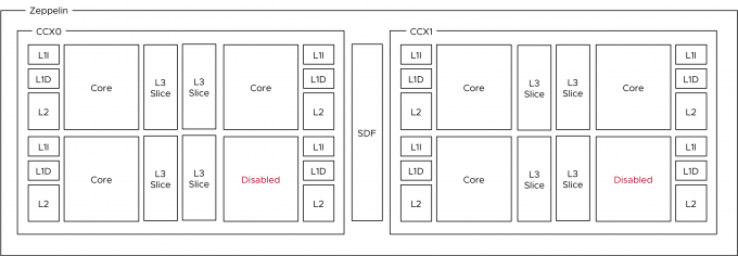 | Cores | Cores per CCX | Total Cores per Zeppelin | Zeppelin Count |