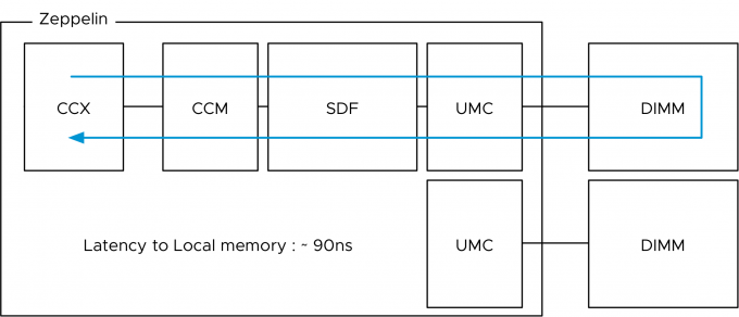 Let’s start with the best and most consistent performance. When a core within the Zeppelin access local memory the path is as follows: