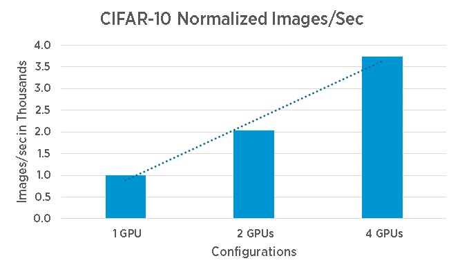 It’s common to run multiple epochs before getting an adequate trained model (and in the process pushing lots of data through the system). Reducing training time, allows the organization to deploy the trained model faster, and start benefiting from their ML and DL initiatives. A “simple” way to reduce training time is to use multiple GPU devices to increase parallelism.