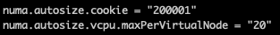 You can do two things to change the configuration of the VPD, use the VM advanced configuration parameter numa.vcpu.maxPerVirtualNode and set it to 10. Or remove the numa.autosize.vcpu.maxPerVirtualNode = “20” from the VMX file.