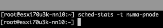The first command I use is to check the “physical” NUMA node configuration “sched-stats -t numa-node”. But this command does not give me any output, which should not happen.