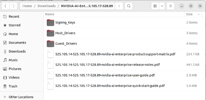 Local working directory: /home/vadmin/Downloads/NVIDIA-AI-Enterprise-vSphere-8.0-525.105.14-525.105.17-528.89/Host_Drivers